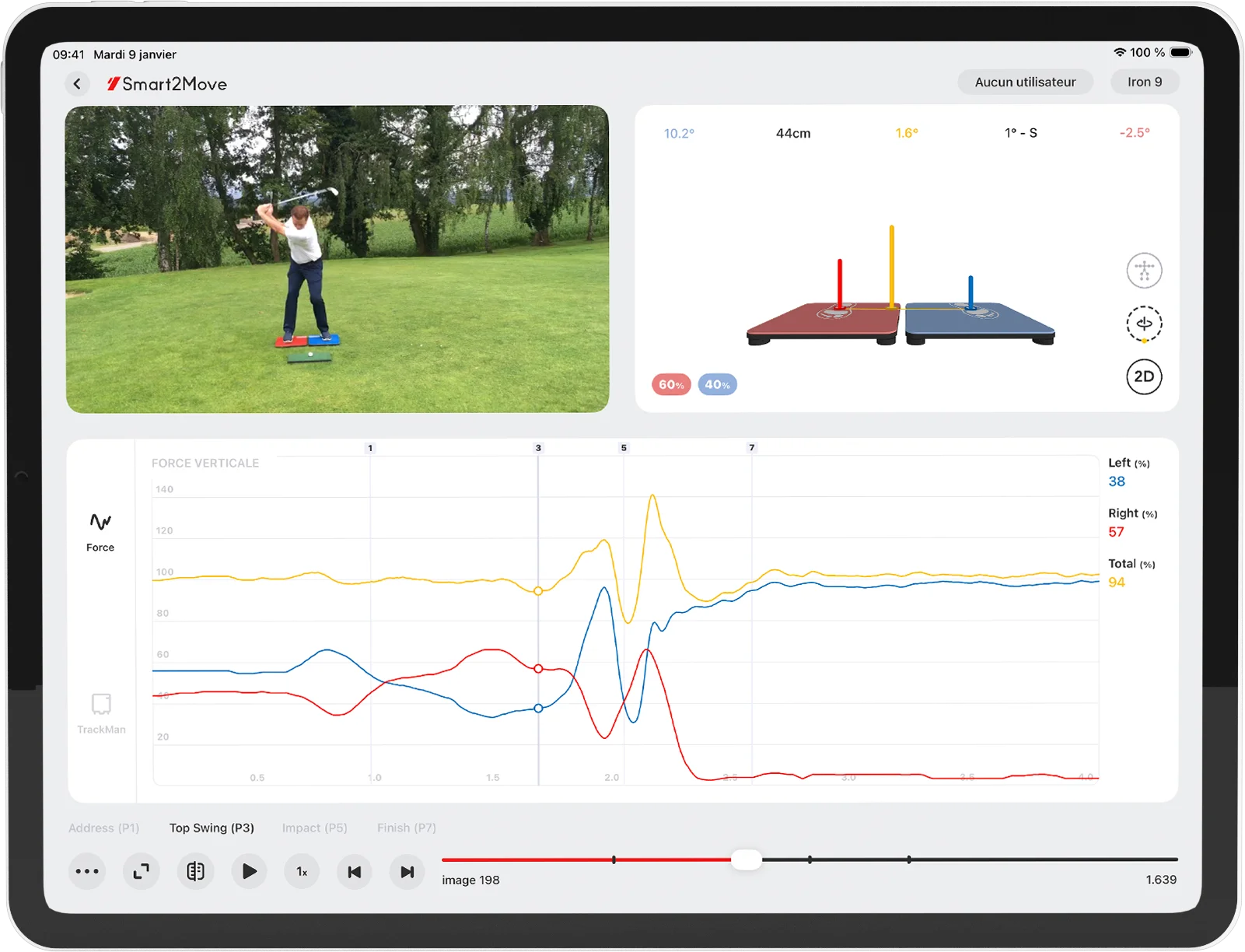 Analyze your swing at 240 frames per second using your iPad camera. View synchronized video and force data side by side to instantly understand the relationship between ground forces and movement.